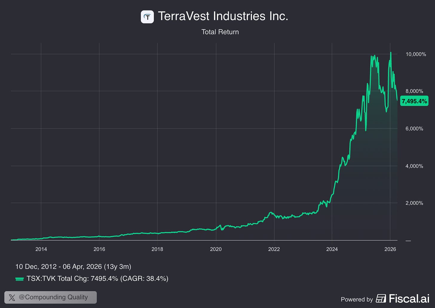 TerraVest: +7.495% since 2012