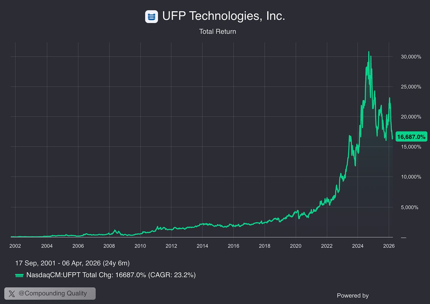 UFP Technologies is up +16.687% since 2001.