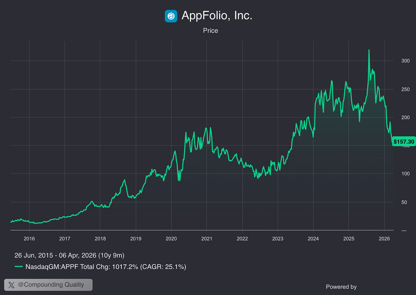 AppFolio: +1.017% since 2015: