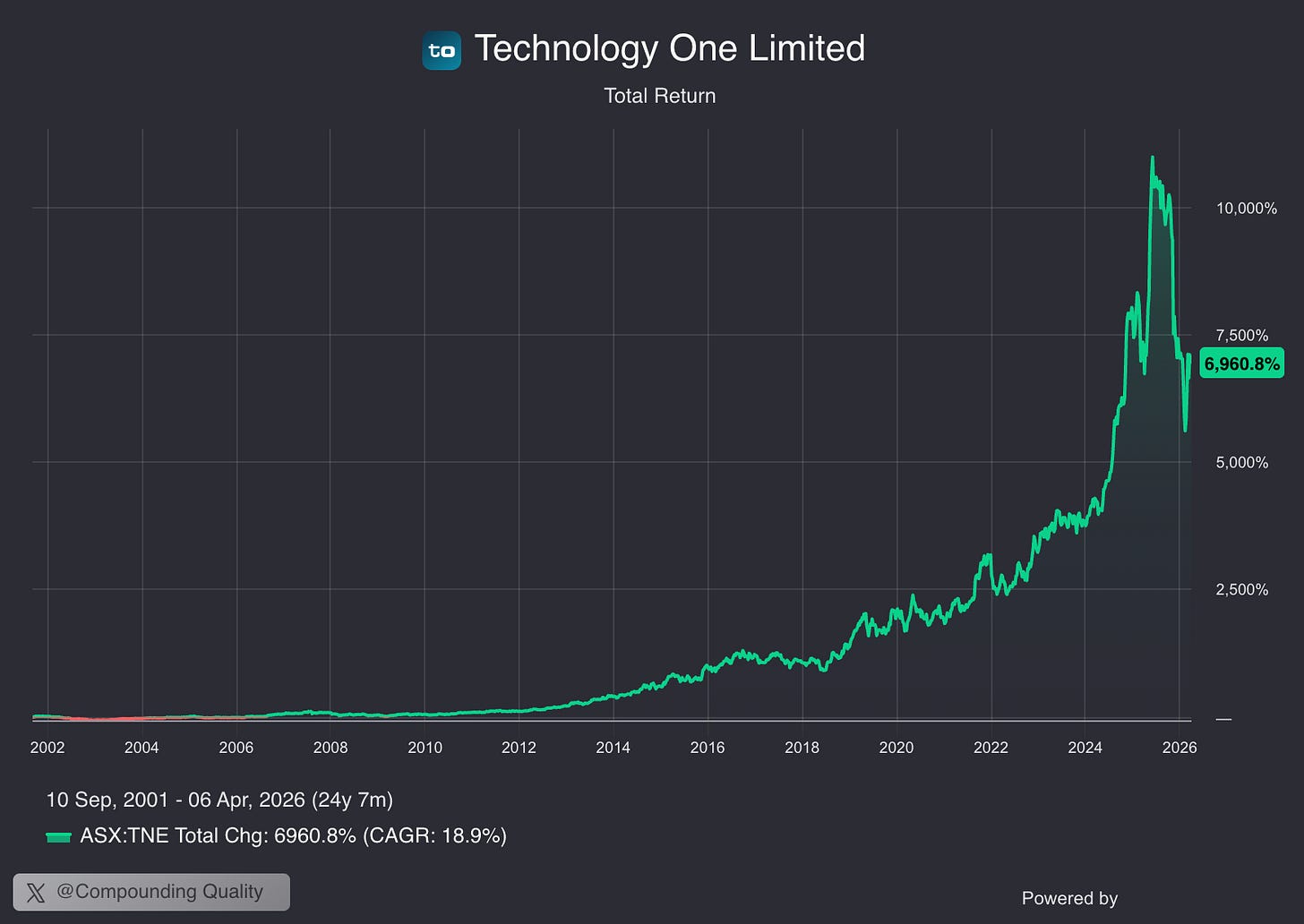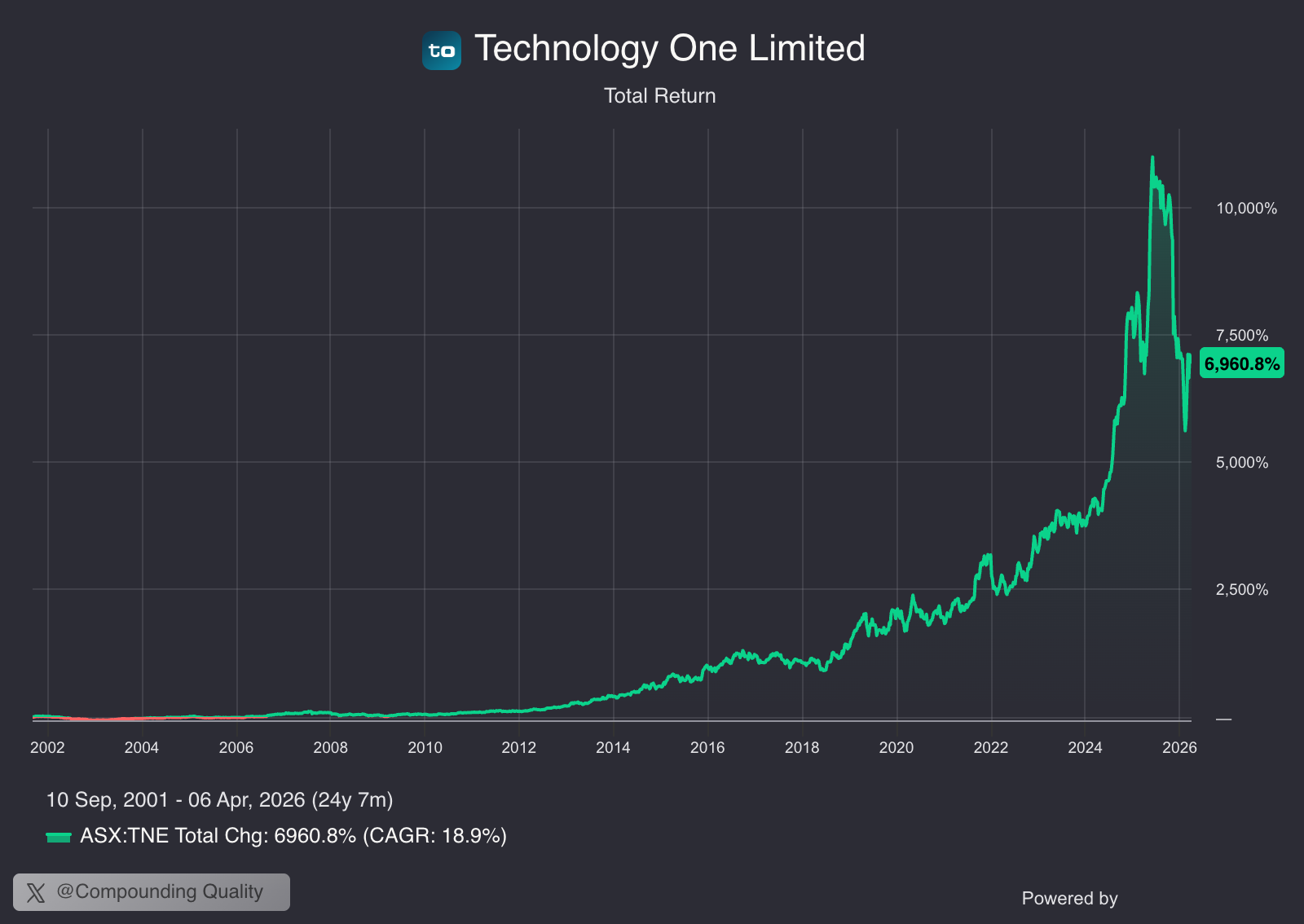 TechnologyOne: +6.960% since 2001
