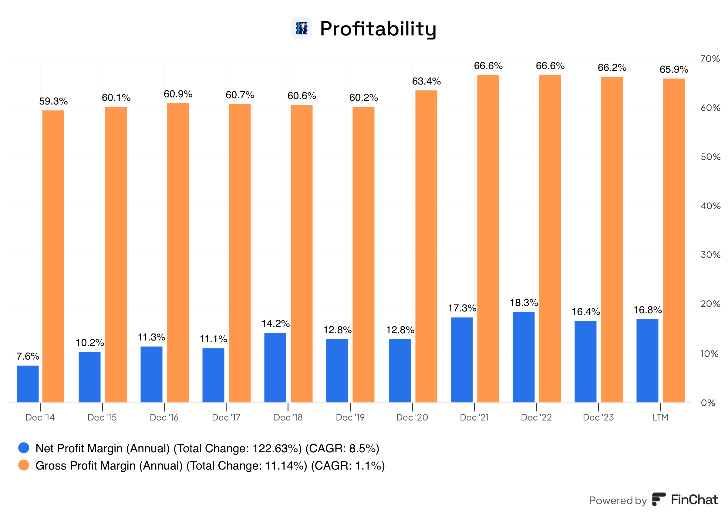 The company is very profitable (Gross Margin: 65.9%)