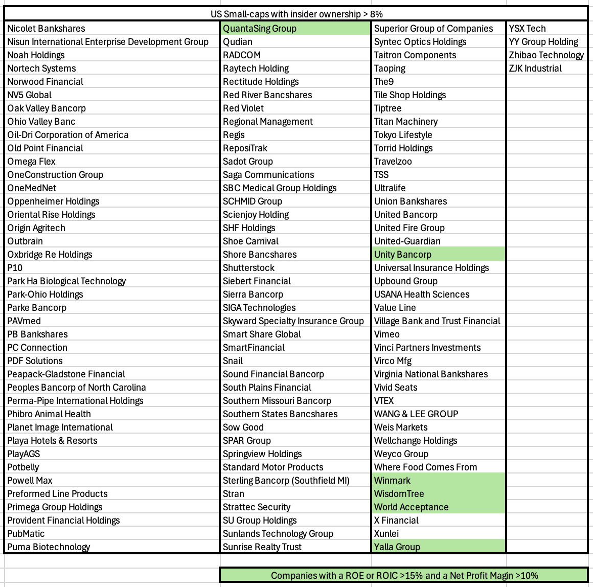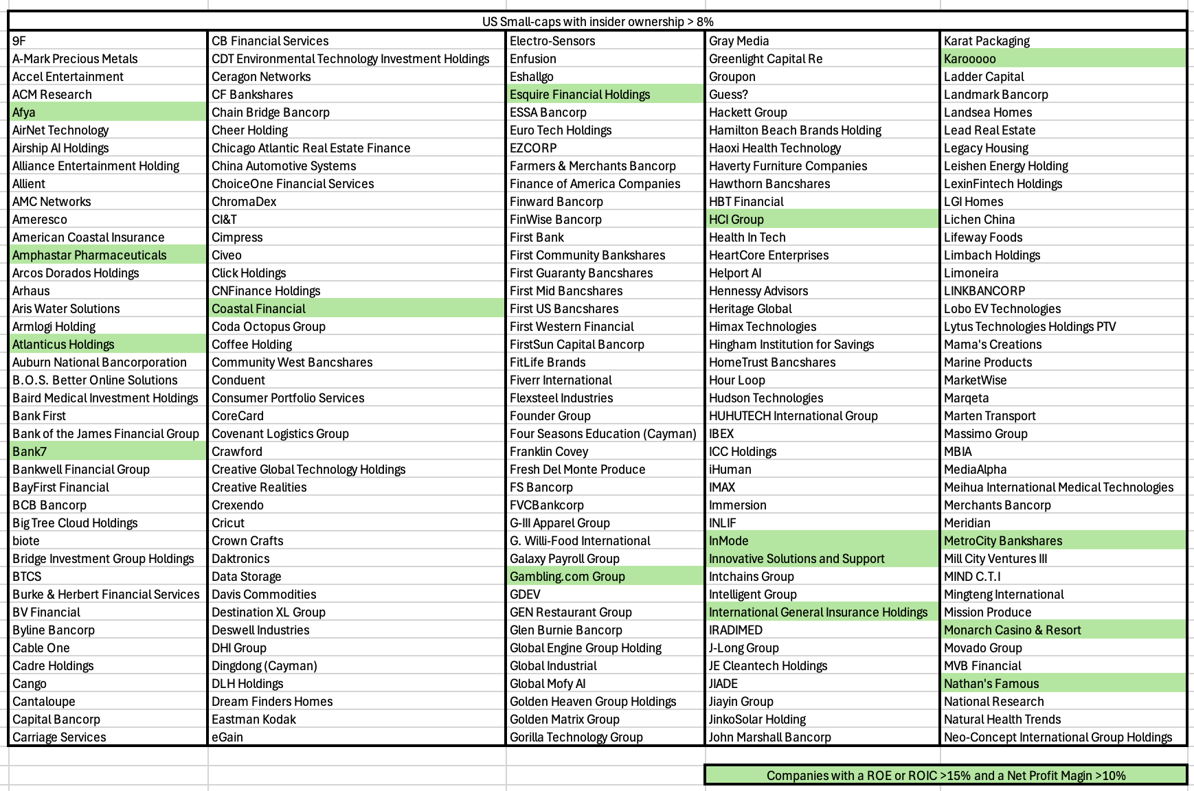 That’s why I compiled a list of US traded stocks where insiders own at least 8% of total shares outstanding.