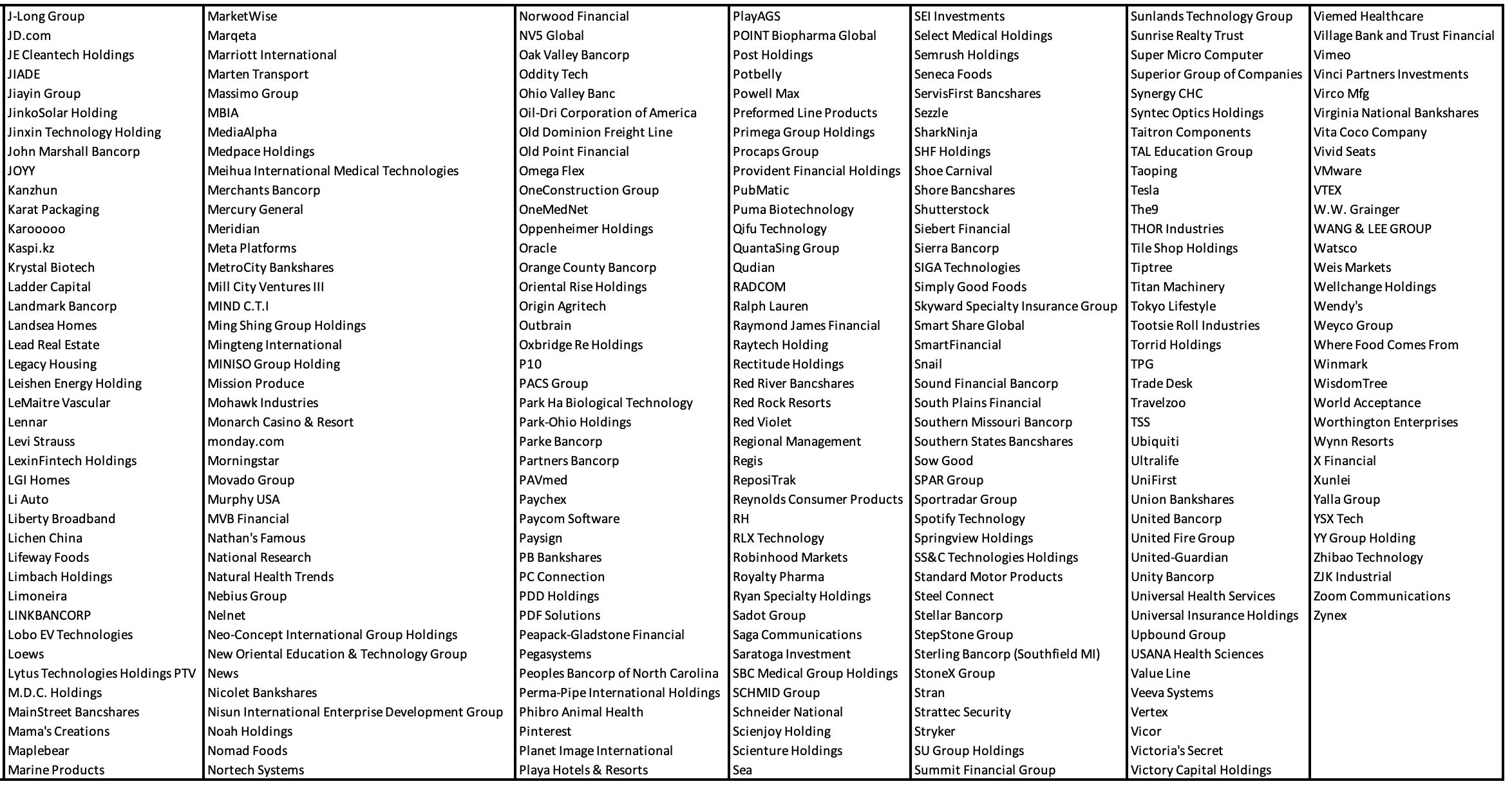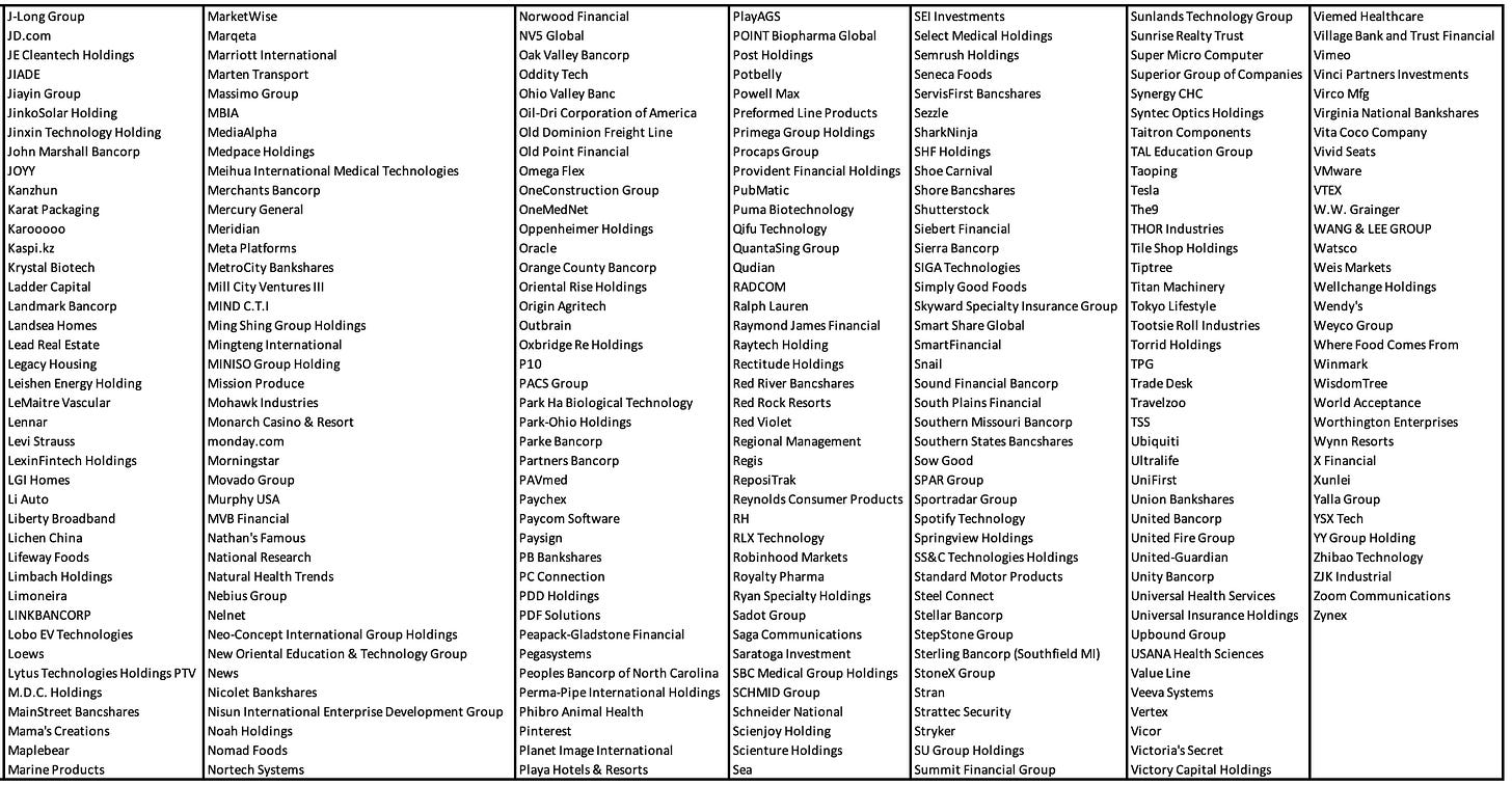 I would be comfortable stating that this list outperforms the market in the long term.