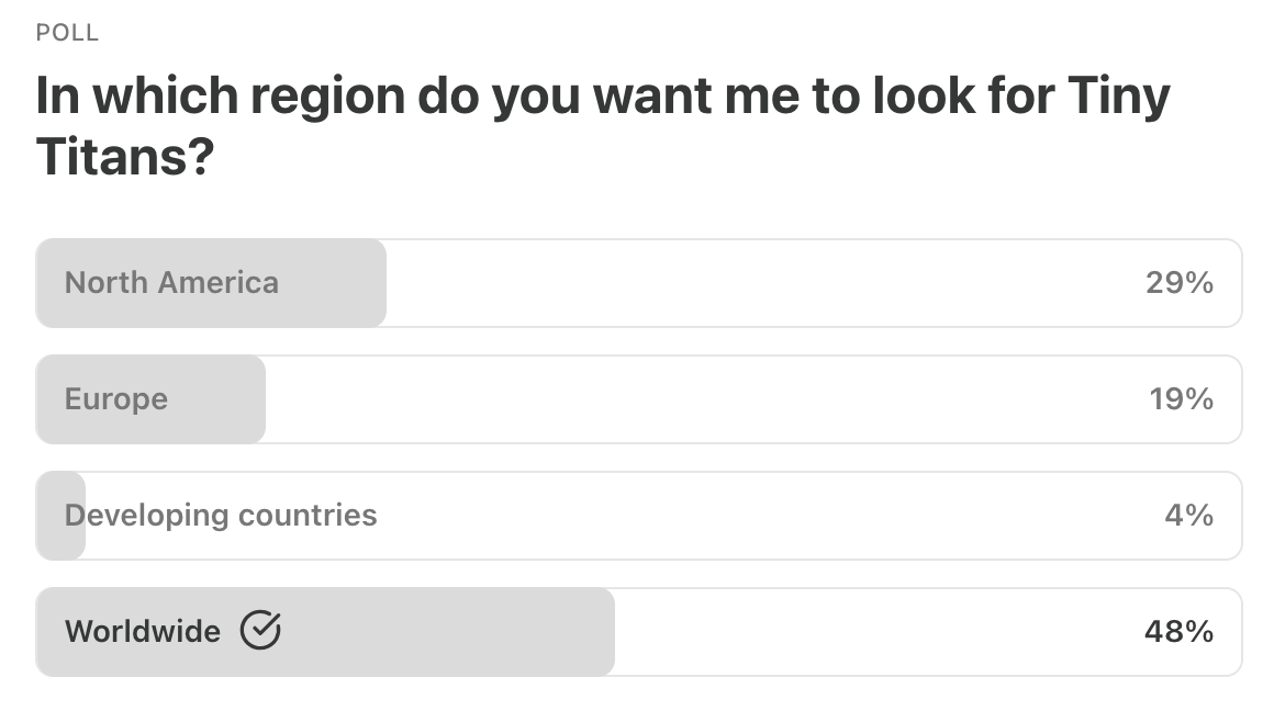 Last week, I asked you which stocks you prefer me to cover for Tiny Titans.