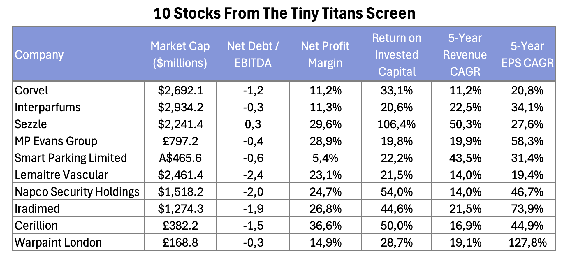Those are exactly the stocks we’re looking for at Tiny Titans.