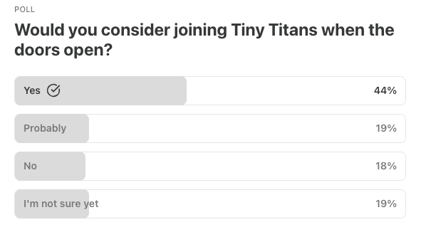 Last week, it became clear that most of you are strongly considering joining Tiny Titans: