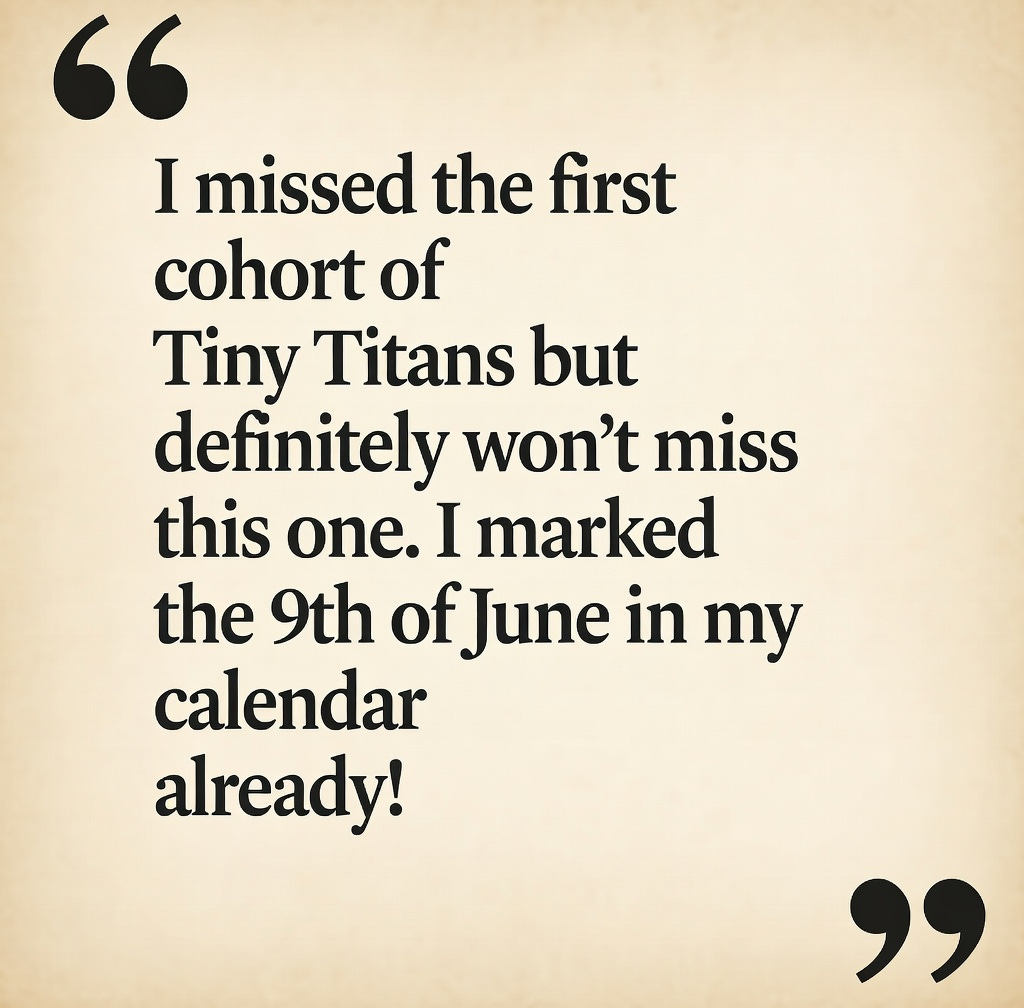 P.S. Tiny Titans will launch on the 9th of June. Don’t forget to add it to your calendar here.