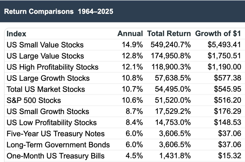 ‘Small Value Stocks’ provided the highest return over the past 60 years.